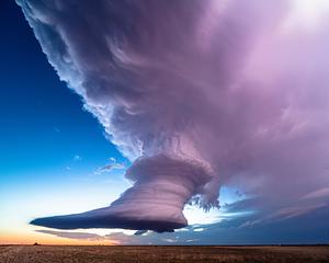 A sculpted low precipitation supercell as night falls in Texas.