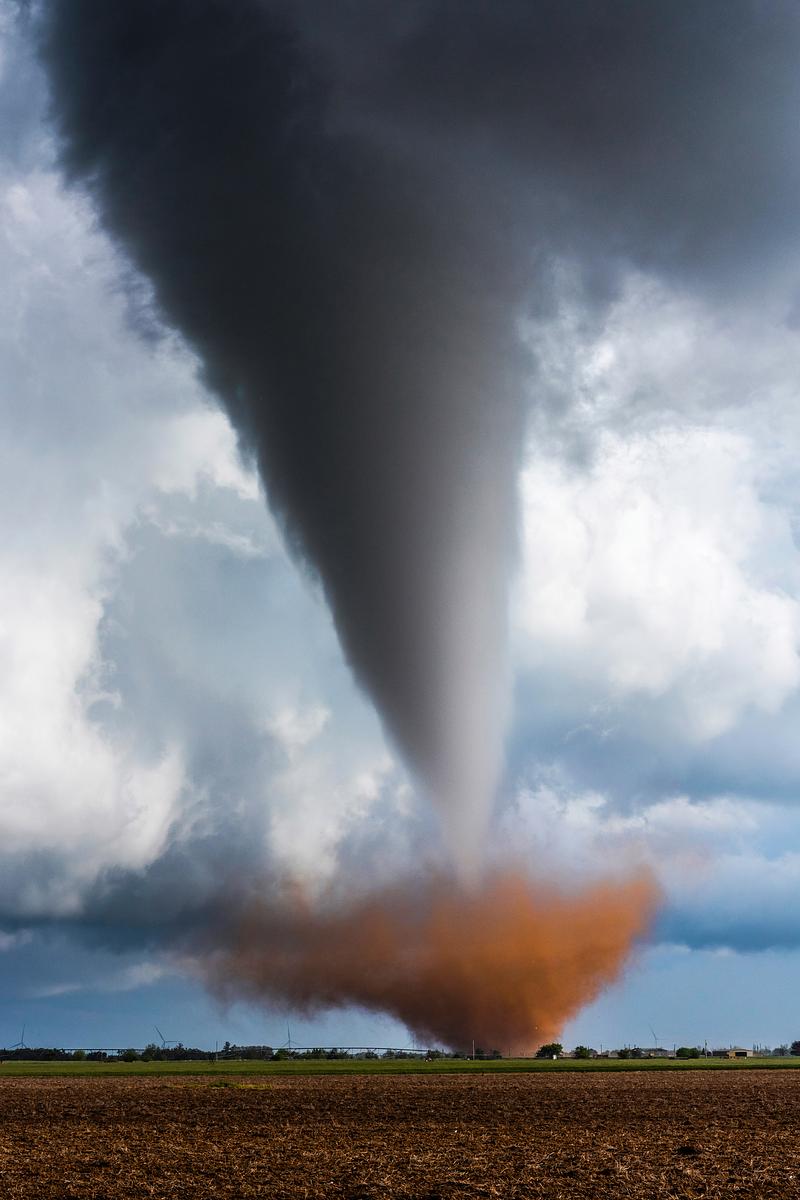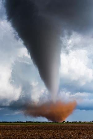 Photogenic tornado picking up orange Texas dirt.